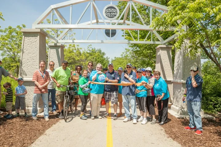 Pictured here: Friends of the Cal-Sag Trail spent June 6, National Trails Day 2015 cutting the ribbon on a completed 13 miles of the Cal-Sag Trail